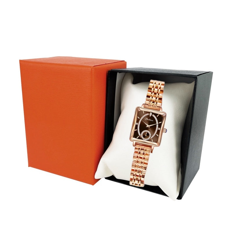 - 💖Стилен и елегантен дамски часовник: диамантен циферблат с римска скала и прозорец за дата, 12-воден кестеняв безел, внимателно проектиран, за да създаде семпъл, небрежен и практичен дамски часовник.