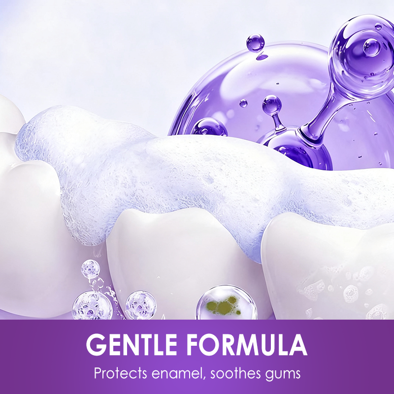 Нежна и безопасна грижа: Формулиран без токсини или дразнещи вещества, той нежно избелва зъбите, като същевременно запазва здравия емайл. Ефективно предотвратява чувствителността на зъбите и подпомага грижата за венците, осигурявайки безопасно и успокояващо почистване, подходящо за ежедневна орална хигиена.