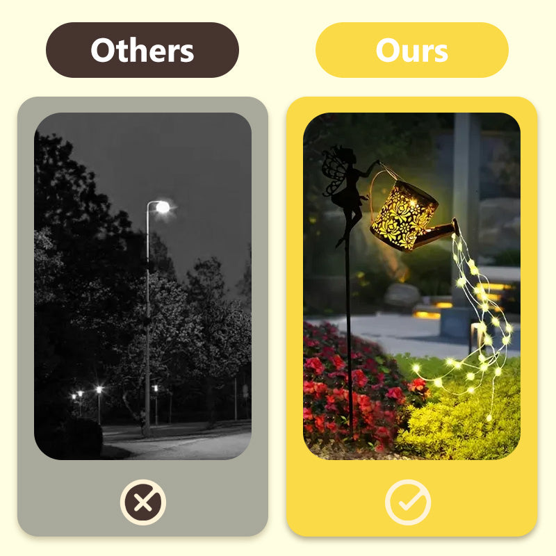 Очарователна градинска магия: Тази лампа за поливане на слънчева енергия създава магична и приказна атмосфера във вашата градина – сякаш феите поливат растенията ви със светещи капчици. Това е идеалният начин да добавите чудо и атмосфера към вашето външно пространство.