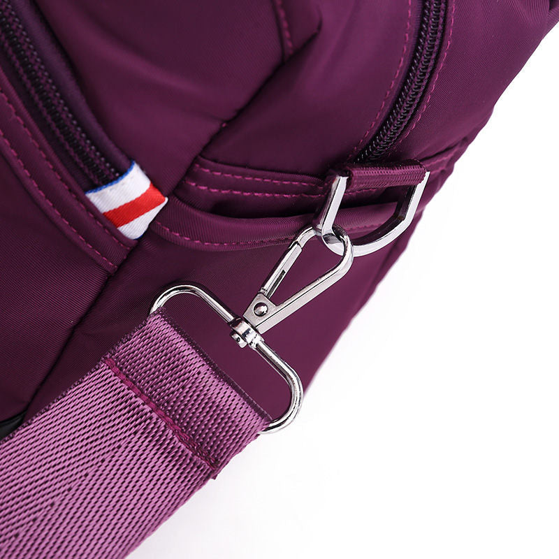 Деликатно изработена с превъзходни шевове и зашивки и изработена от висококачествен найлон, нашата чанта за рамо е изключително мека, издръжлива и устойчива на пръски, за да запази ценностите ви сухи. Когато чантата се замърси, просто я избършете с влажна кърпа или я изперете в пералня.