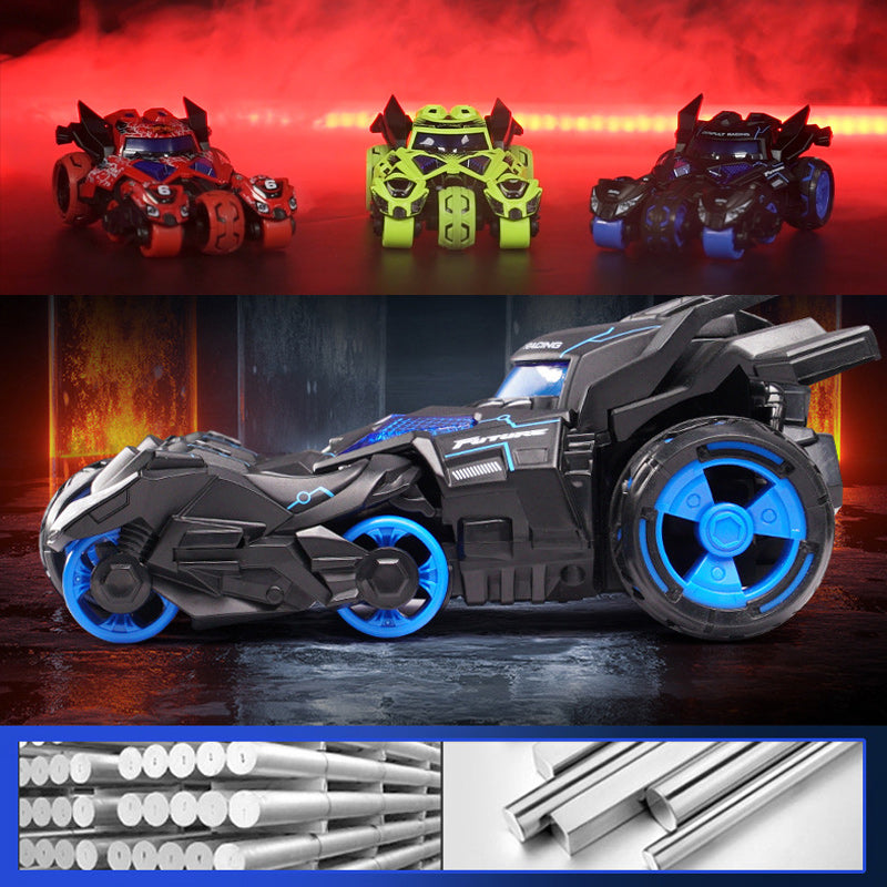 Мини мотоциклети с двойно изстрелване: Активирайте механизма за изстрелване, за да изстреляте два миниатюрни мотоциклета от превозното средство, което повишава интерактивното вълнение от състезанието. Перфектно стимулира творчеството и състезателния дух по време на игра.