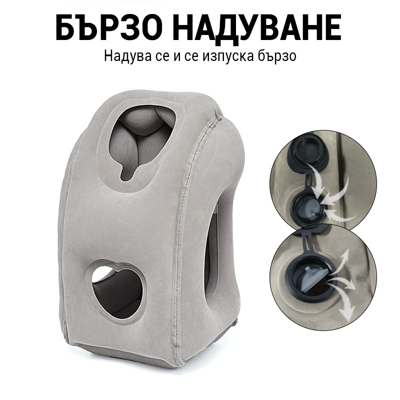 🌬️ Ергономична надуваема пътна възглавница ✈️😴 | За комфортен сън в кола, самолет или влак