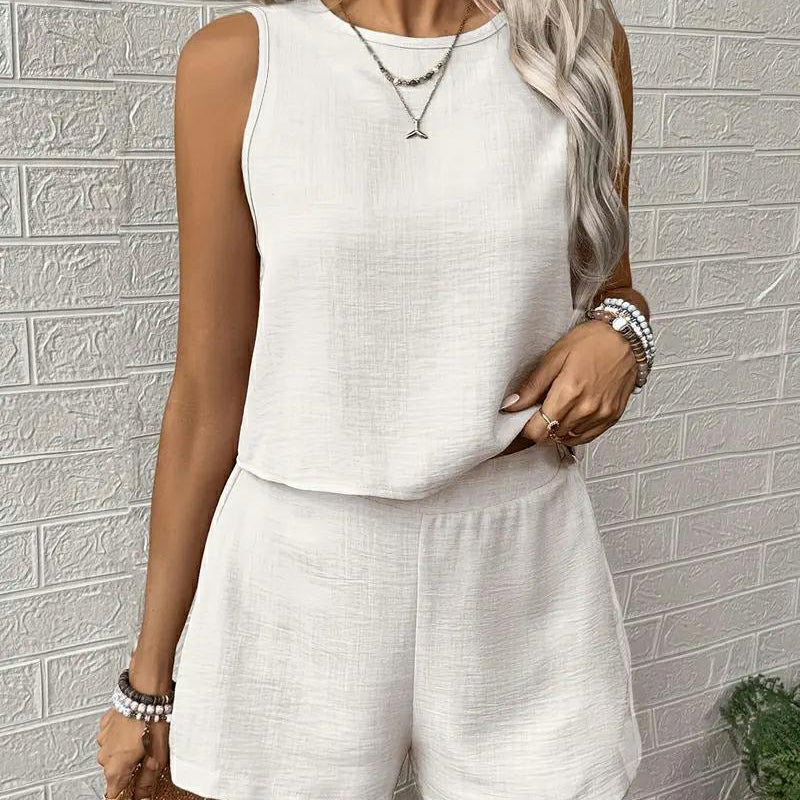 Пакетът включва: 1×Женски случаен комплект от две части с горнище без ръкави и шорти
