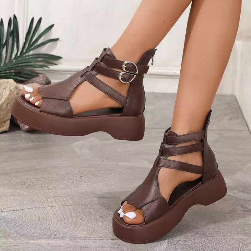 СТИЛЕН ДИЗАЙН С МНОГО РЕМЪНИ - Кръстосаните ремъци обвиват стъпалото за шикозен, модерен вид, като същевременно осигуряват регулируема опора и сигурно прилягане. Перфектни за разкрасяване на ежедневни тоалети или за добавяне на допълнителен щрих към вечерен тоалет.